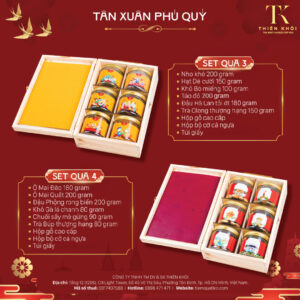 SET QUÀ TẾT TIKO 2513 Set quà gồm: 🌸 Mứt Gừng 120 gram 🌸 Nho khô 200 gram 🌸 Hạnh nhân rang bơ 180 gram 🌸 Khô Bò Củ miếng 120 gram 🌸 Rượu Chanh giấy miền tây 530ml 🌸 Hộp giấy cao cấp 🌸 Hộp bộ cờ cá ngựa 🌸 Túi giấy 🌸 Thiệp...